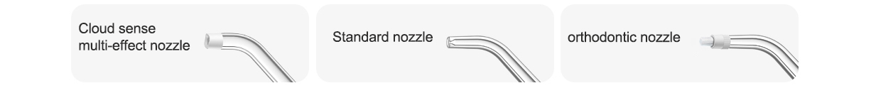 *Versatile Nozzle Options,Includes Cloud Sensing Multi-effect Nozzle, Standard Nozzle, and Orthodontic Nozzle, catering to different user needs.
